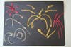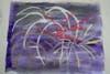 For the first, use light and bright colors of crayons or oil pastels. Draw shapes and lines that remind you of fireworks. Maybe two bursts of color over-lap or there could be smaller bursts or drops of color that rain down from a larger center.