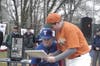 Players, parents and coaches braved the weather on a chilly, drizzling morning to open the youth baseball season
