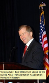 McDonnell, a Northern Virginia native, outlined how some of Northern Virginia's success as a business and government center have led to transportation woes and the need for infrastructure improvement.