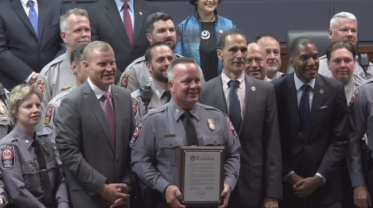 On Tuesday, the Fairfax County Board of Supervisors praised the law enforcement officers who contributed to the peaceful resolution of the standoff. Officers who responded to the days-long barricade were on hand to receive a resolution, presented by Mount Vernon District Supervisor Dan Storck with Chairman Jeff McKay and Franconia District Supervisor Rodney Lusk.