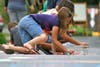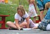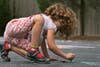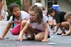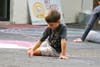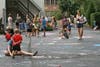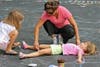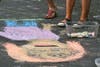 Art at the Center opened up their parking lot this morning for kids (and moms) to grab some chalk and decorate to their heart's delight. For two hours children chalked flowers, aliens and outlined their bodies.