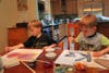 Whichever paint you choose to use, provide each painter with a brush or brushes, a shallow jar of water, a dry towel or washcloth and a space at the table. If sharing paints, make sure containers are large enough to be passed around the table and are accessible to all who are seated.