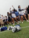Cheerleaders and other sports team members celebrate the beginning of a new school year.