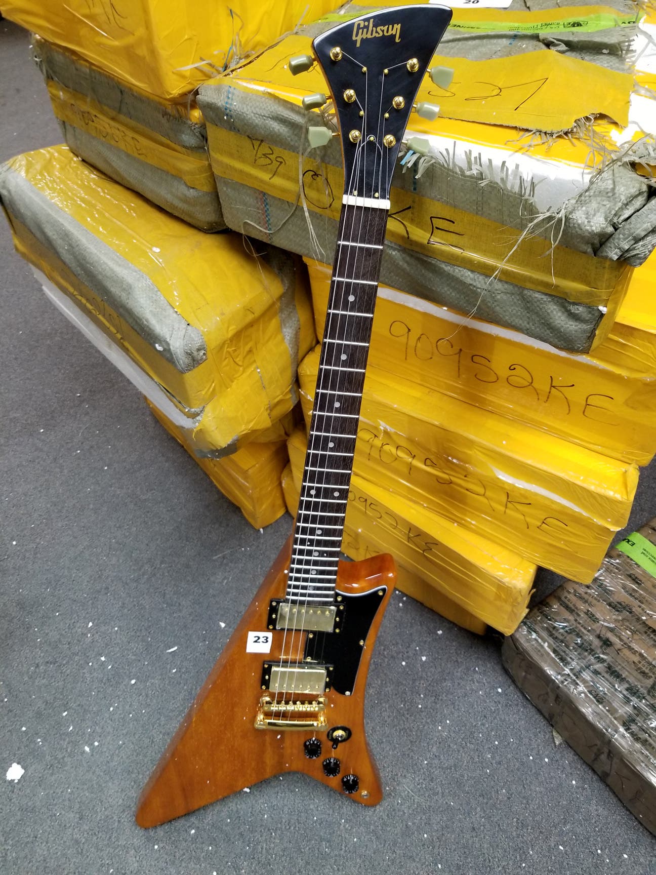 The majority of the shipment contained 72 Gibson models, with the remainder being CF Martin, Fender, Kramer, and Taylor guitars. The guitar with the highest estimated value was a Les Paul ax, which was allegedly signed by Guns and Roses guitarist Slash and was said to be worth $8,000. If the 86 guitars were authentic, they would have a total estimated value of $258,707.