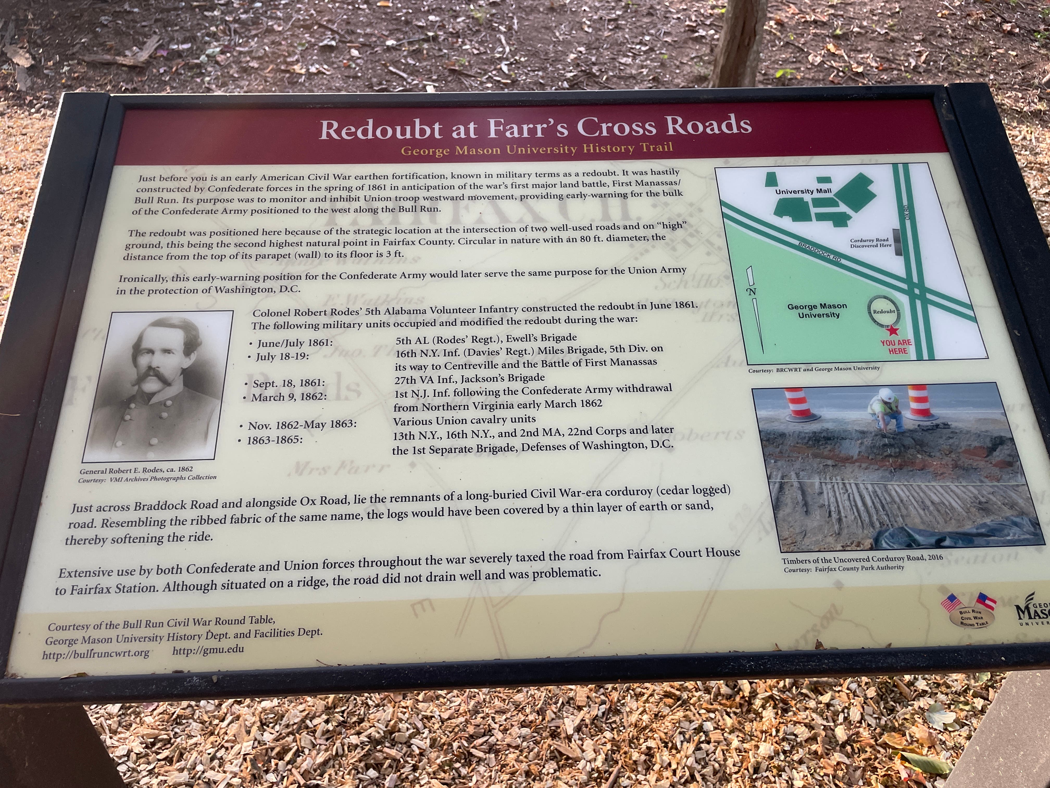 George Mason University dedicates a Civil War-era redoubt located in a wooded area adjacent to parking lot K on its Fairfax campus.