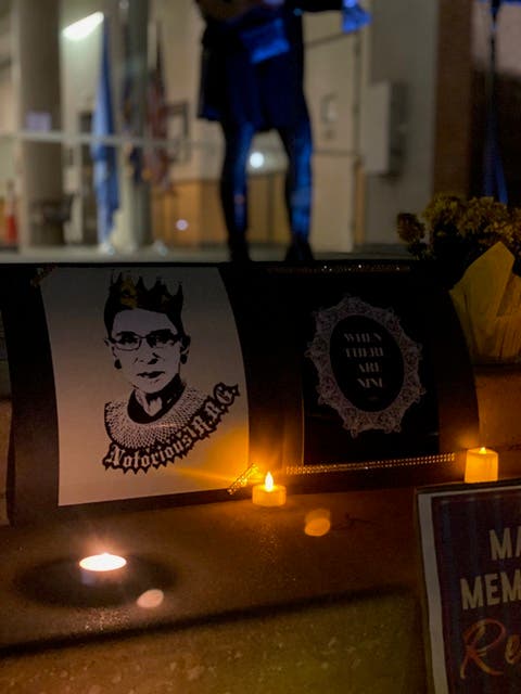 "Quite a few people came up to speak and share their thoughts on RBG and what she meant to them personally," said LuLaRoe Brenna Danatzko, one of the vigil's organizers. "One woman said she was a first generation American. She moved to this country after her home country informed her she was unable to open a bank account for her daughter and that her husband would have to do it for her. Another speaker said she would not have the opportunities in the workplace without RBG and she wanted her daughters to have the same. Another said she was moved by the amount of young people that came out to celebrate someone who was an idol to her when she was young many years ago. She said it gave her hope for future generations."