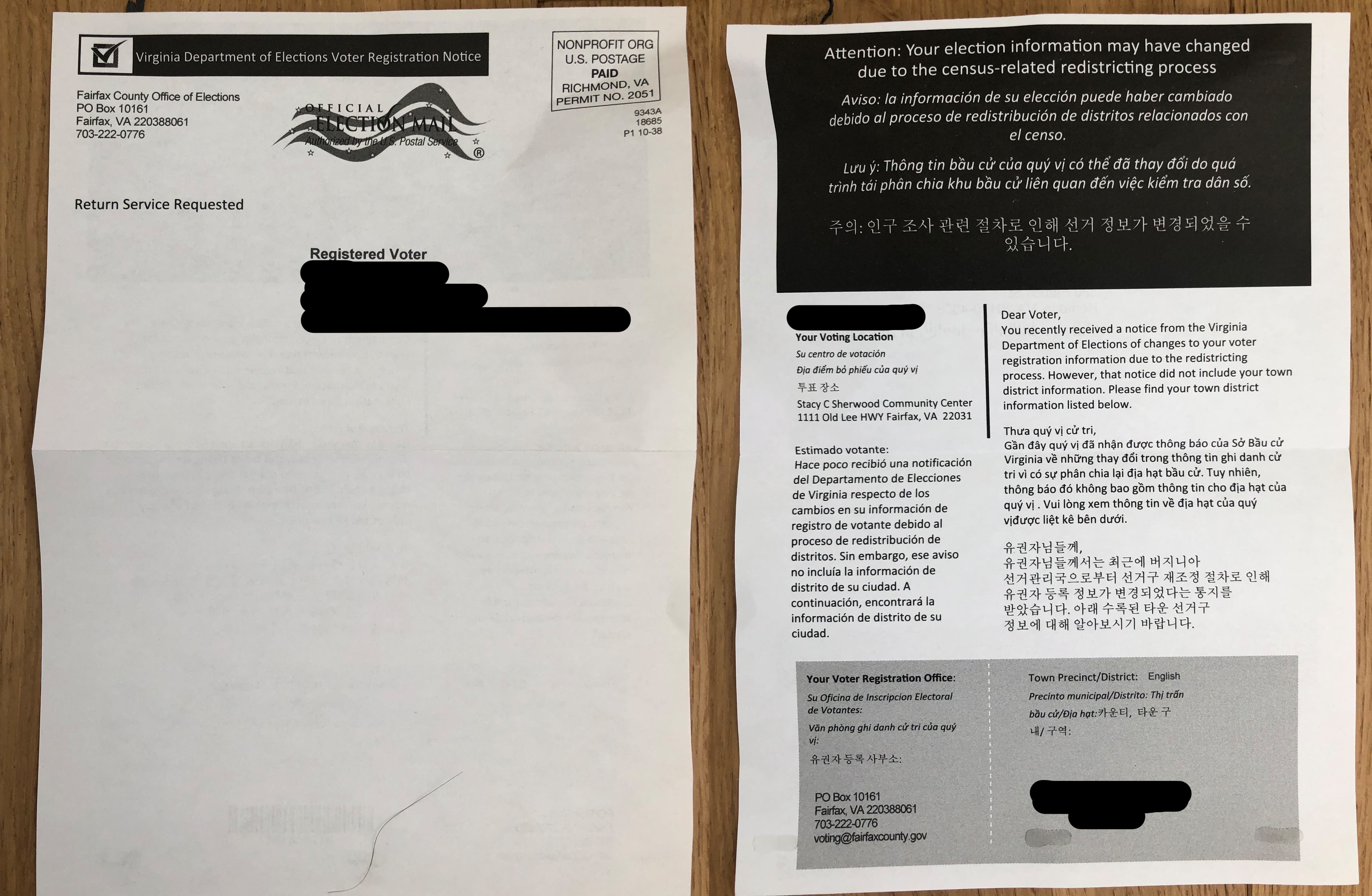 Virginia Board of Elections sent mailers with incorrect precinct information to towns in Fairfax and Prince William counties.