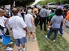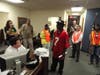 Washington DC – Scores of unemployed District and Virginia workers streamed through the Herndon district office of Congressman Frank Wolf today leaving behind 20 thousand job applications. The 30 minute procession of protesters called for an end to the jobs crisis. Wolf was urged to reverse his job killing vote that eliminated 2012 funding for the Homeland Security Headquarters project in Southeast Washington jeopardizing 20 thousand jobs.