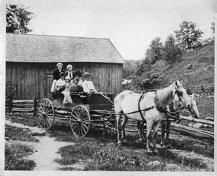 After selling his farm in New York, Thomas Hazard bought a couple teams of horses, hooked them up to a carriage and two wagons, and moved his family south. John Ford Hazard said that his father “hitched the light team to his carriage and behind that hitched a very light spring open ‘Democratic ...’” and to another team his father “hitched to it two spring market wagons … on these were loaded furniture, and the lighter goods, and three pigs of best Western N.Y. breed, as Father was not favorably impressed with the wild hogs of Virginia.”