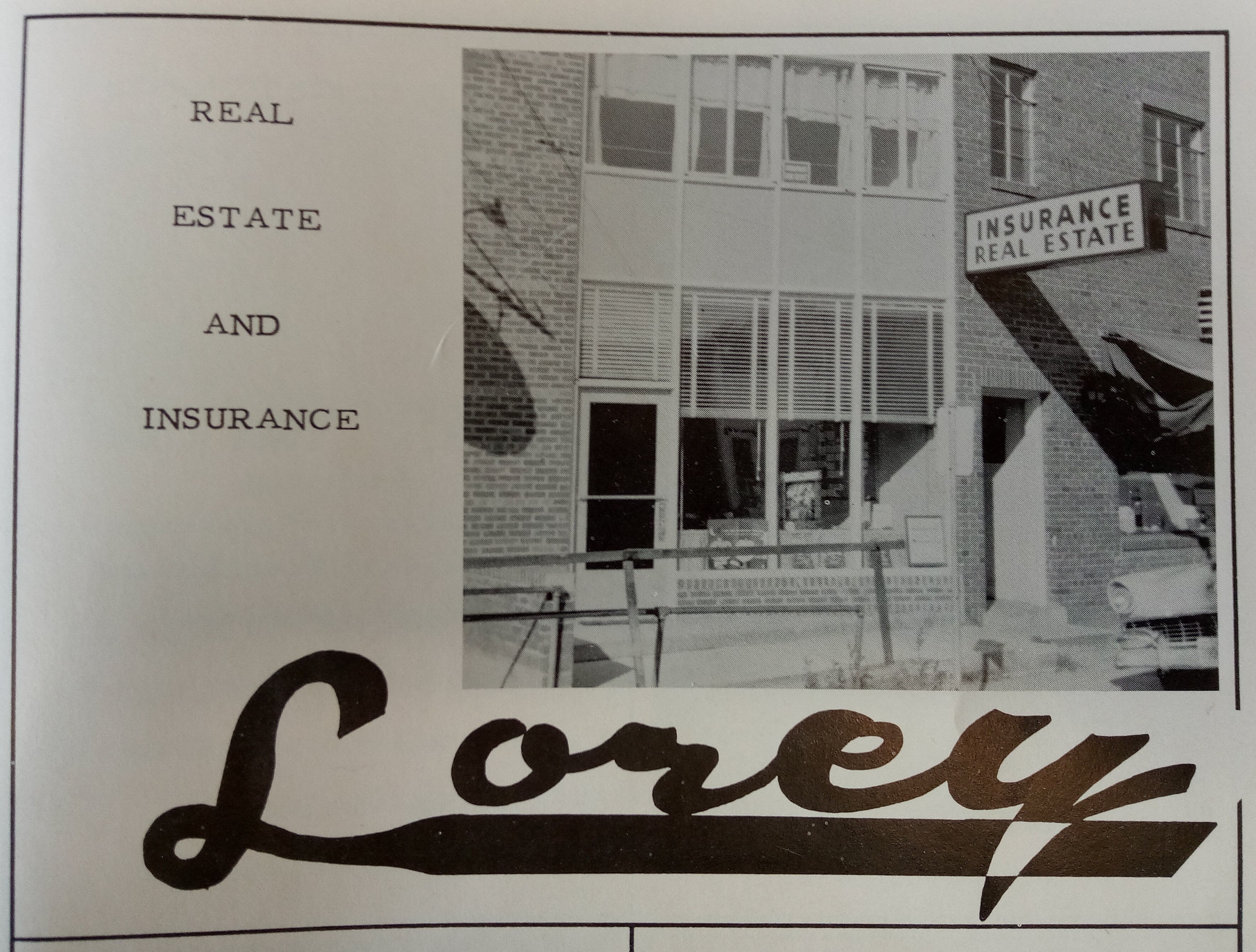Eventually, Updike built a new and proper small building on the west side, to replace the shed-like structure. Staubus continued to operate an insurance office in this building and lived upstairs in the apartment. The Martins still owned both “sides” of the building and, across the years, different businesses occupied the smaller addition on the west side. Herndon High School yearbook advertisements from 1952, 1954 and 1956 show that Staubus had his insurance office in the building. However, in the 1958 and 1965 yearbooks, the Lorey Real Estate and Insurance Agency was shown there. It was also known that a beauty parlor once occupied the building.