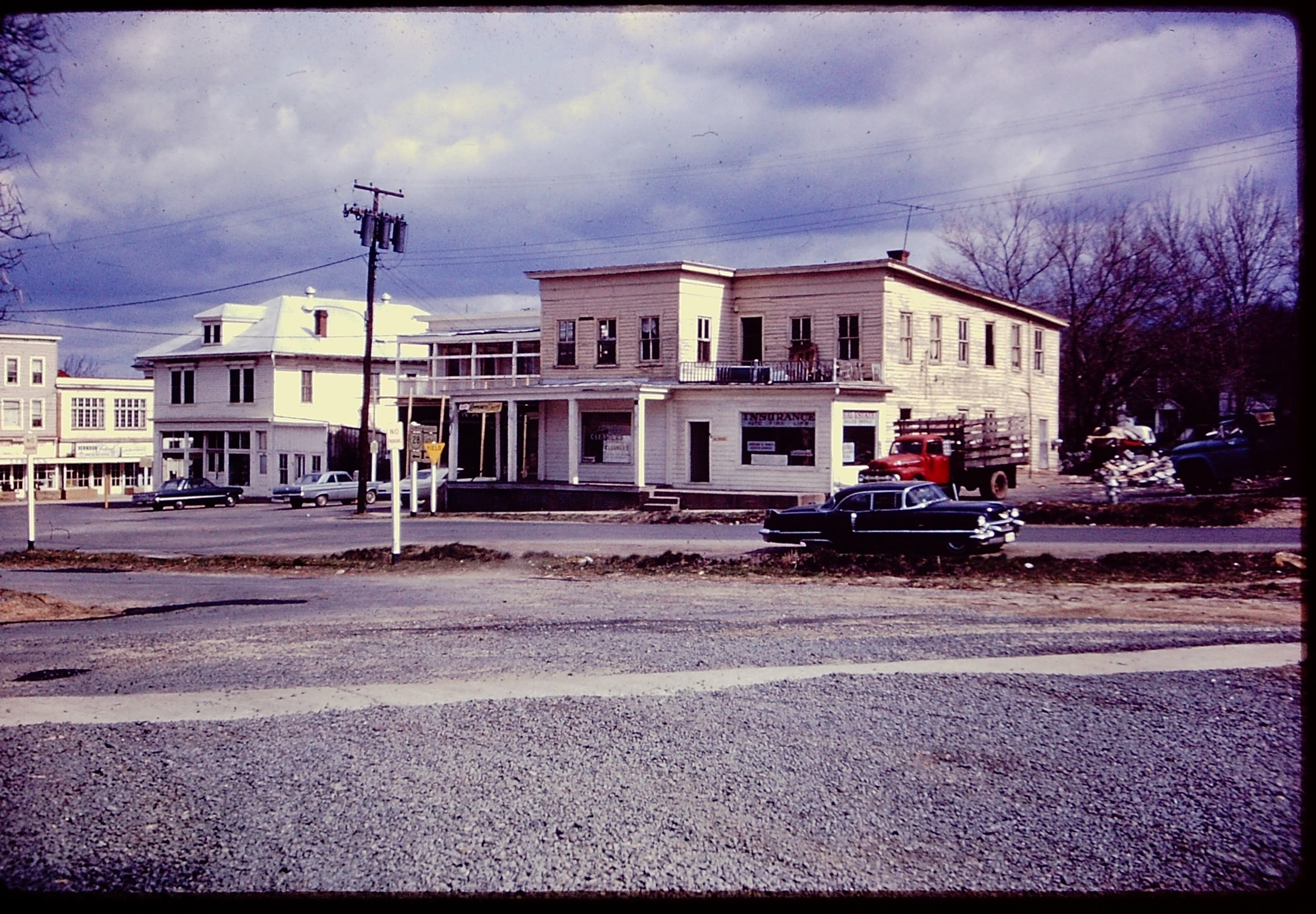According to Howard and Arthur Nachman, their father, Philip “Melvin” Nachman, bought the hotel building sometime between 1955-1965 and had it taken down sometime around 1966. Melvin Nachman, who operated the Nachman’s clothing store next door, had bought the hotel building, with the intent of wanting to create a mini-strip shopping center there in order to attract more people to the downtown area. He had a one-story brick building constructed that still stands today, which housed various small businesses. High’s Dairy Store and the Herndon Florist were a couple of the early occupants of the new brick shops.