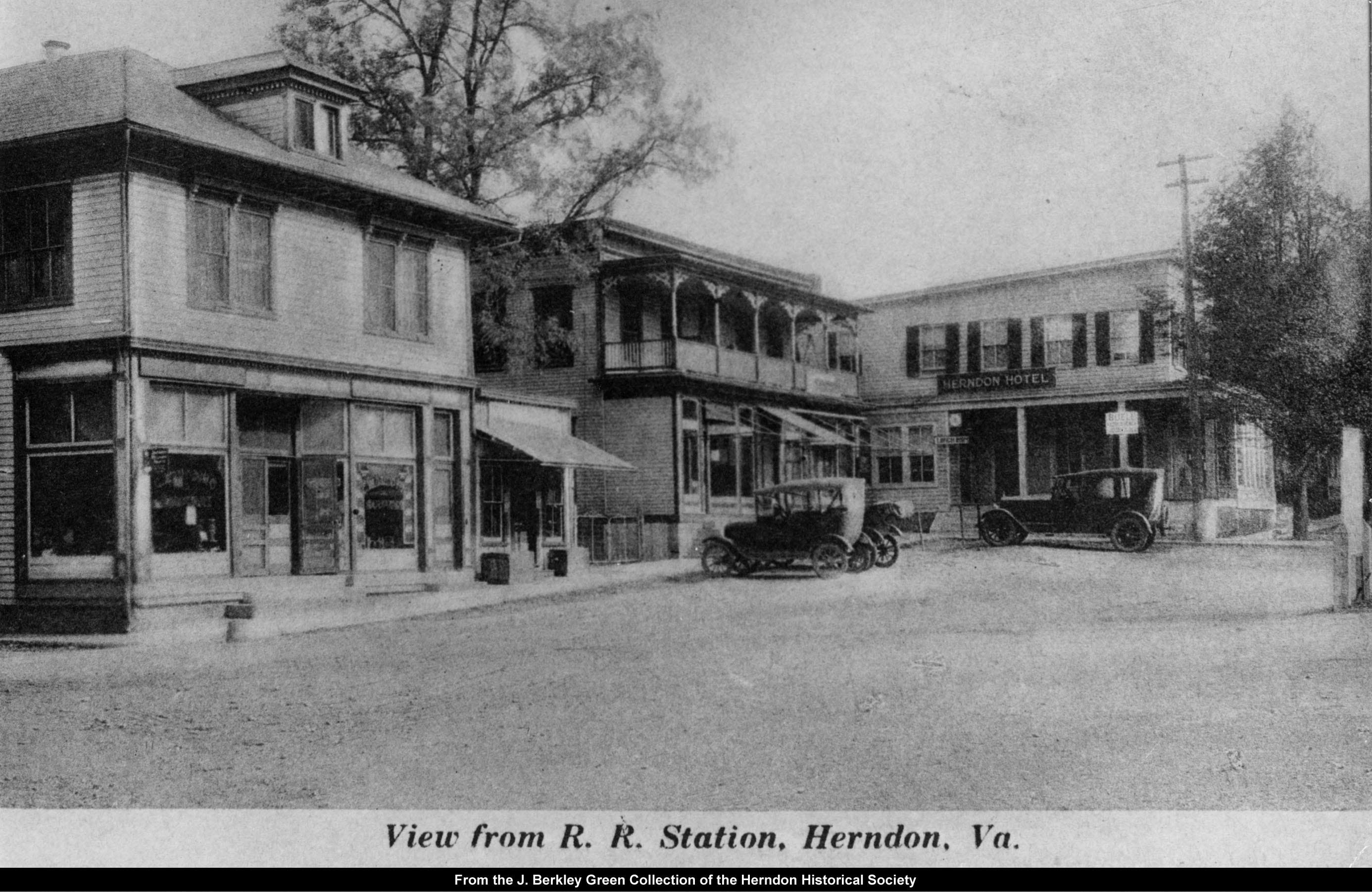 The railroad arrived in Herndon in the late 1850s and started running a full schedule in 1860. With the rail also came city families looking to take the hour-long train ride from Washington, D.C., to Herndon, to spend weekends or summers in the “country.” Some summer homes were built in Herndon and there were also a number of boarding houses. The electric trolley cars started operating on the railroad in 1912. The Herndon Hotel may have originated out of the increasing demand to house those people who came to Herndon by train.