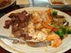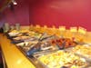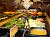 This is not just sushi buffet, but a bounty of cold salad and vegetable selections--from crisp greens and ginger-peanut dressing, to marinated fresh vegetables in a whirl of interesting spices and dressings, perfectly-sliced tofu, and succulent fresh fruit, which tasted as good as it looked. Their hot bar is equally tasty, for those in the group who are not crazy about sushi, or who want to try something different. Of the hot dishes, I recommend the sesame chicken wings, beef tataki, fried gyoza, and beef bolgogi.