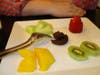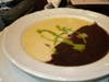 The chef disappeared into the kitchen. Shortly thereafter we were served a square plate and in the four corners were fresh fruit, and in the center was a York-peppermint-sized dark chocolate circle, cut in half. "Be sure to eat the fruit first, otherwise you will not get the whole experience," instructed our waitress. "It is called Chocolate Diablo." We were glad we were obedient. The sweetness of the ripe fruits set the stage for the taste of the very, very rich chocolate morsel—just let that one melt in your mouth. It was a sensational ending to a fantastic meal.