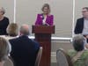 The highlight of the luncheon was the presentations by the two featured authors: Judith Pearson, author of Wolves at the Door: The True Story of America’s Greatest Female Spy; and Sean McFate, who writes both fiction and nonfiction, his latest book is High Treason. The authors each gave short recaps of their books. Then Peggy Fox, Media Relations Manager for Dominion Energy, discussed their books, and asked questions in a ‘fireside chat’ scenario. Audience members also asked questions, and were able to meet the authors, purchase their books and have them signed, before and after the luncheon.