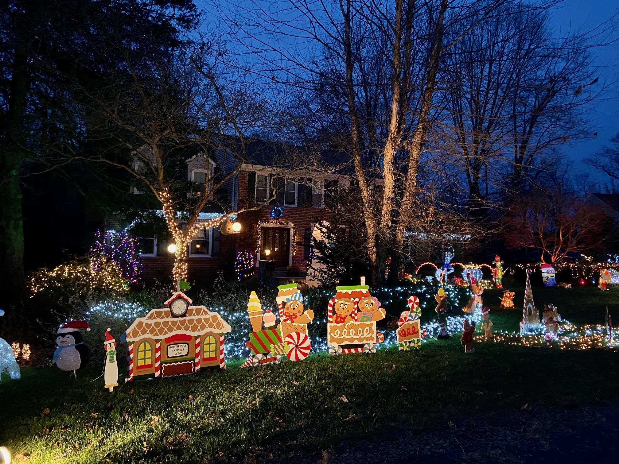 10140 and 10131 Hillington Court, Vienna, VA: This cul-de-sac goes all out for Christmas. A gingerbread village made scratch is featured, and new pieces are added every year.