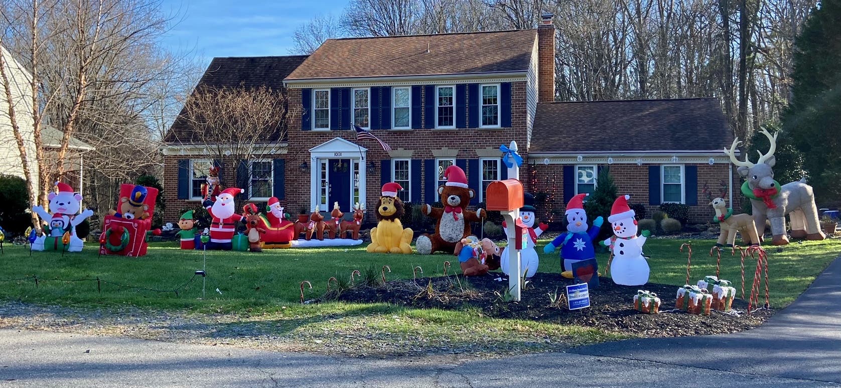 96 Carriage Hill Drive, Fredericksburg, VA: This display boasts 30 inflatables and a homemade LOVE sign, a Christmas train, state of Virginia sign, and plenty of bright lights. The display is on Sunday to Thursday from 5 p.m. to 11 p.m. and Friday to Saturday from 5 p.m. to midnight. If windy, inflatables will be off.