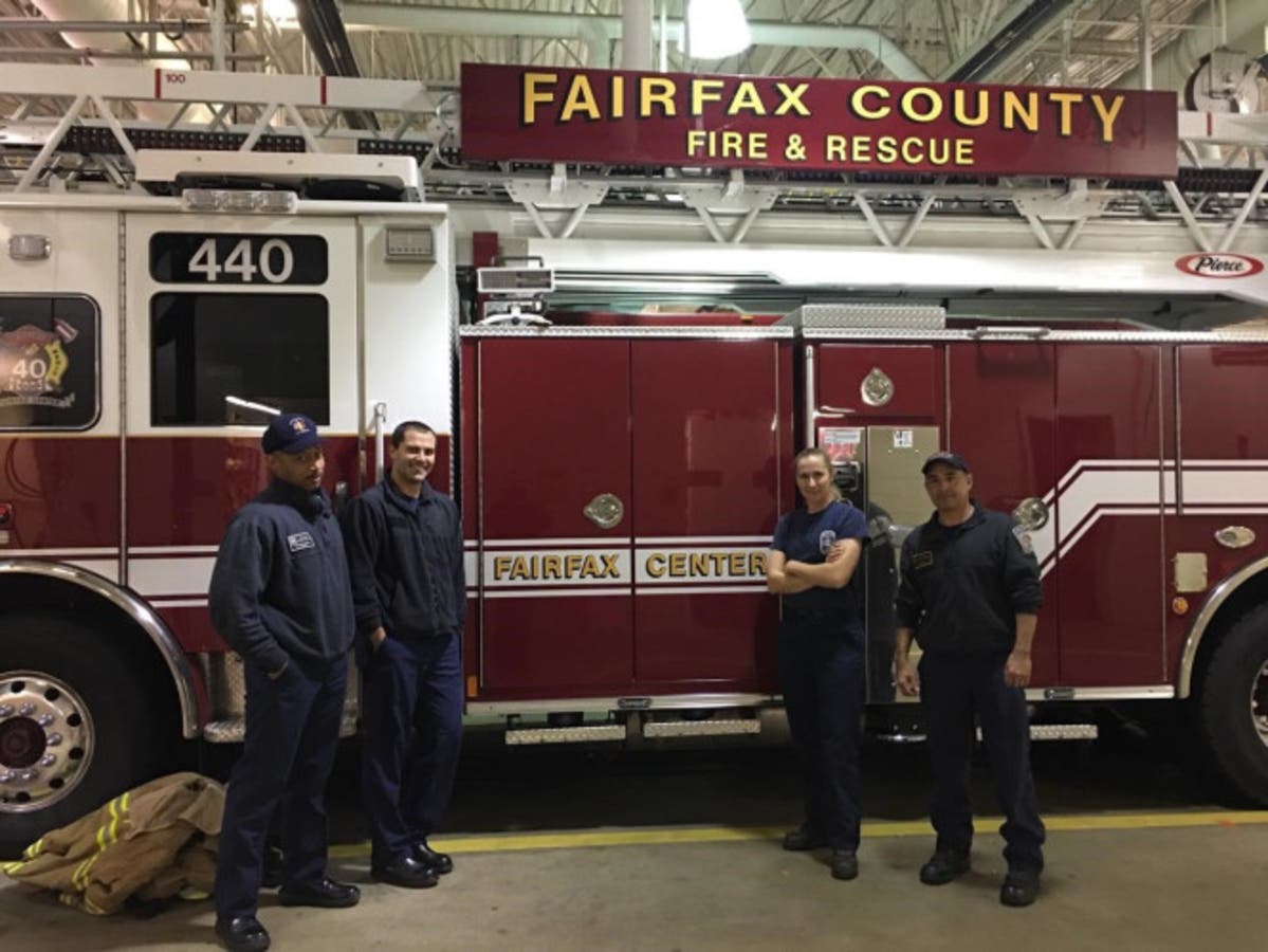 Left to right: Firefighter Arthur Claiborne, technician Adam Bartman, firefighter Kathryn Buist, Lt. Matthew Nacy. Image via Fairfax County Fire and Rescue