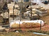 Although the tanks were emitting a vapor of gas, they were structurally sound. The team worked to turn off the tank valves, which involved digging up one tank buried in the mud.