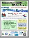 On Saturday, April 13th, from 9 AM to 3 PM (rain date is April 20, 2013), several local non-profit groups and agencies are teaming up to sponsor a clean-up of the upper Occoquan River, from Cedar Run/Broad Run to Lake Jackson then from below Lake Jackson Dam to Lake Ridge Marina and Hooes Run. We anticipate accessing the river and reservoir at multiple sites again this year. They are looking for your help!
