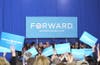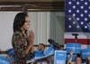 Michelle Obama makes a pitch for her husband during a stop at the Loudoun County Fairgrounds Tuesday.