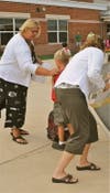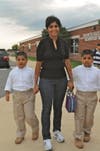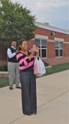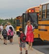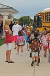 Principal Brenda Jochems and her staff were on duty by 7 a.m., organized to meet every bus and every parent in a car. Their job: Get a stick-on tag on every student identifying his or her bus number.