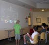 At the August session of the Gamer’s Union, the idea appeared to be working as planned. Although three different games were projected simultaneously onto the walls, several boys clustered around one of the consoles, talking enthusiastically as they played a succession of games.