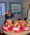 Betsy Creamer, president of the women’s group, said that the gifts include teas, hot chocolate and other beverages, and healthy snacks – “granola bars, cookies, chips, nuts, and a big basket of fruit.”