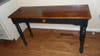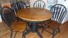Dining room set has table with leaf, 4 chairs, sofa table and 2 piece hutch all solid cherry with hunter green accents.