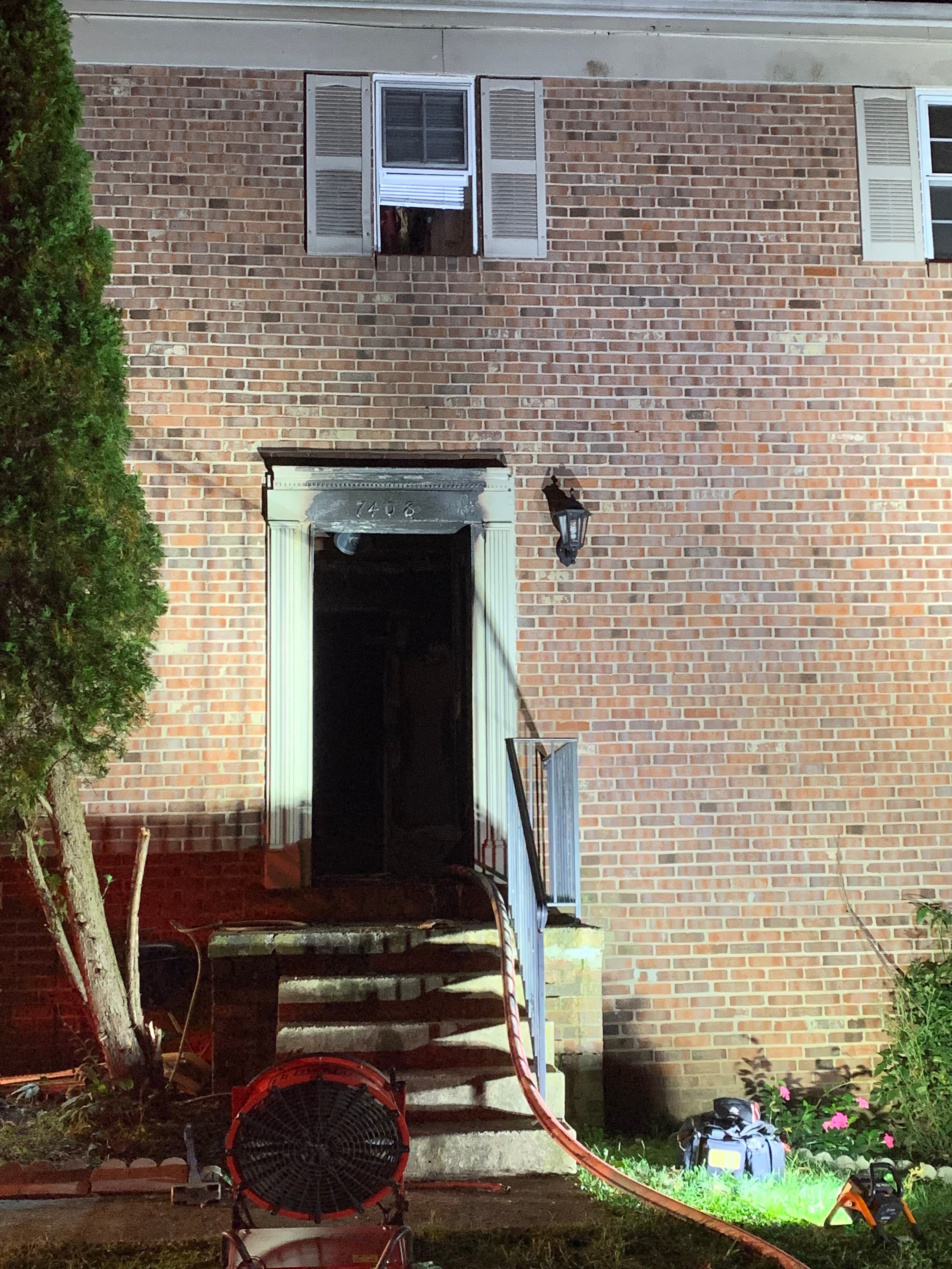 At about 8:30 p.m. Tuesday, Fairfax County fire units were dispatched to the 7400 block of Larne Lane for the report of a fire. Units arrived on the scene of a two-story, end-unit townhouse with smoke coming from the front door. Crews located a fire in the hallway, near the front door.