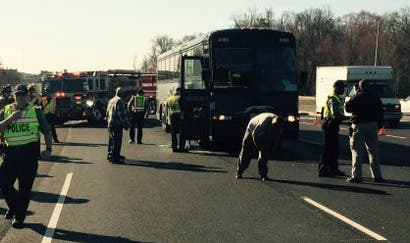 Image: Police officers look over the bus involved in Wednesday morning's accident (FCPD).