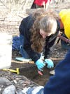 Staff archeologist Elizabeth Paynter, excavating what may be the foundation of a Colonial building, said that volunteers multiply the manpower of the project. "Volunteers can choose what they would like to do, and we train them," she said. Jobs range from digging to washing artifacts in the lab, to inputting information into the site's database. "We teach the basics of archeology and what we do," she said. For those interested in more, there is a training certification program.