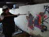 The volunteers painted over all the graffiti that had been tagged on three sides of the concrete bridge abutments over Pohick Creek and the Fairfax Cross-County Trail. Water-based latex emulsion paint was applied using paint rollers on six-foot extension handles. The work went quickly and the project was completed in less than two hours time. State Delegate Dave Albo helped to register the volunteers and directed volunteers to the graffiti removal site.