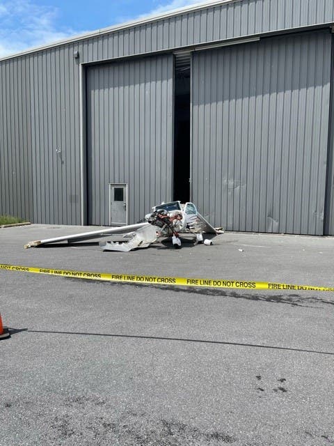 The crash occurred at about 11:40 a.m. along the 490 block of Airport Road. A preliminary investigation revealed that the Single Engine Jabiru Aircraft was attempting to land at the airport in Frederick County when it collided with an aircraft hangar, the state police said.