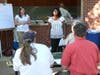 Why not join me, and be "1"? You might get to sand and paint the gazebo, which has had a lively history of its own; it was the fairgrounds ticket booth. Then it sat beside the Old Town caboose. Then it was moved to Public Works, a place for children to have their face painted during Public Utilities Day. Last Saturday, Chuck Poppe (Yard by Yard Landscaping) and Mark Olsen (Olde Towne Landscaping) gently deposited it, "1" last time, into the heart of a neighborhood. A place for "1" to sit and watch the sun set, surrounded by the laughter of children, and the camaraderie of gardeners, digging in the soil.