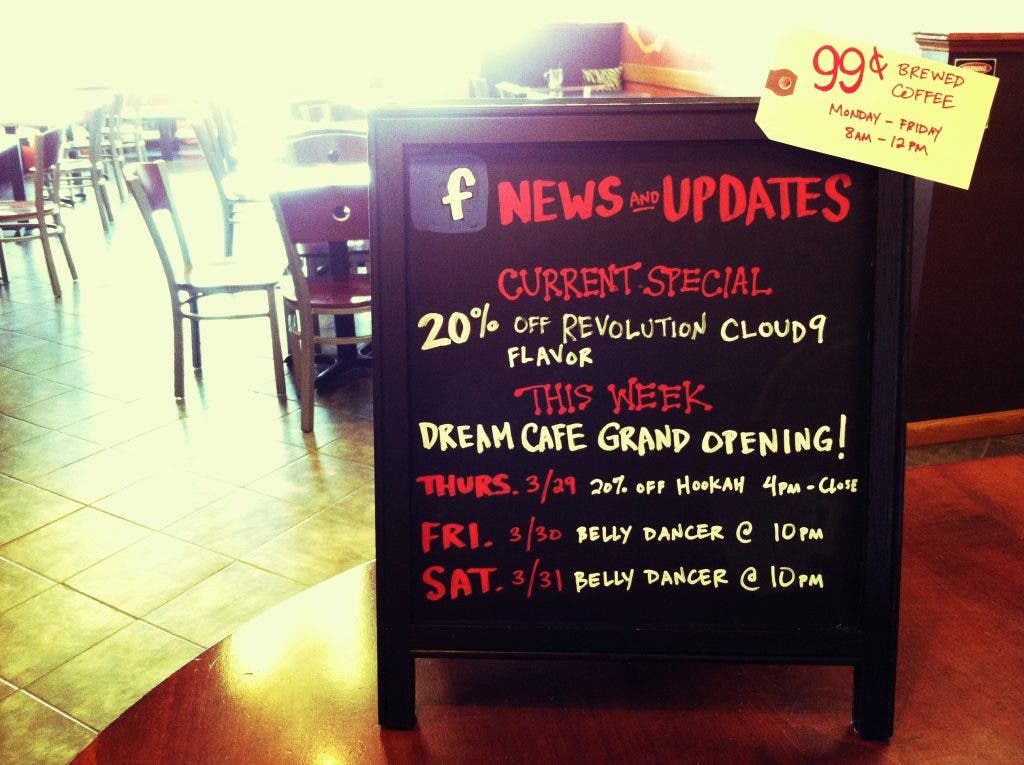 Dream Cafe will hold an official grand opening celebration this weekend complete with specials, games and belly dancing, so be sure to round up your friends for the following events: