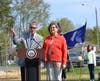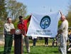 Photos from last year’s celebration, including City Horticulturist Steve Seeba accepting the Tree City USA flag from a state forester; Mayor Parrish and Councilwoman Sheryl Bass addressing the crowd; the Tree City USA Flag;