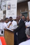 Religious leaders from First Baptist Church Manassas, Holy Family Catholic Church and Mt. Olive Baptist Church spoke at the event, announcing a campaign to demand financial institutions to correct the mortgage modification and foreclosure process and create a multi-million dollar fund to help rebuild communities devastated by the foreclosure crisis and the lack of accountability on the part of the banks to help keep people in their homes.