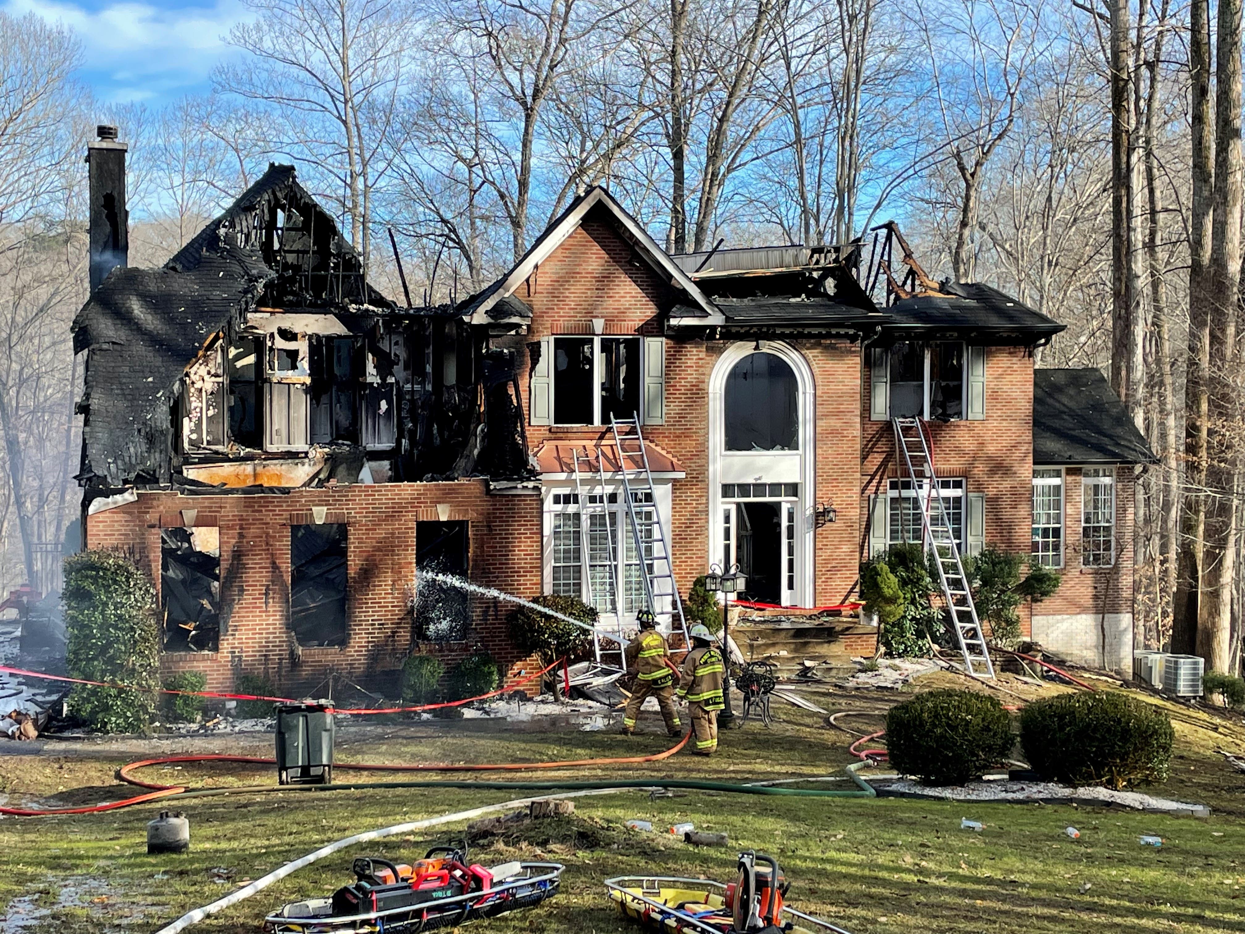 " The volume of fire and structural damage made extinguishment more difficult and time consuming," officials said in a news release. "The home was totally destroyed."