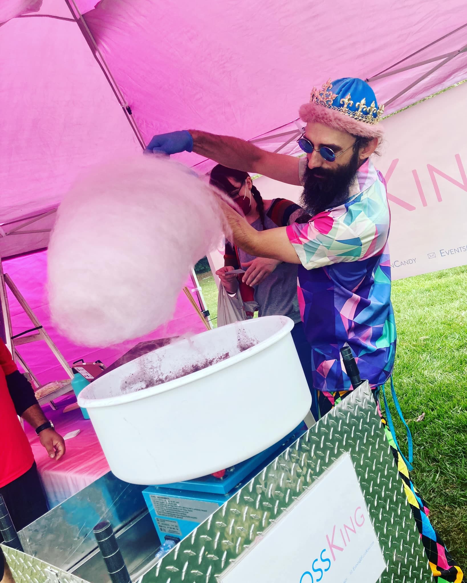 Manassas resident's Floss King turns sweet treats into a show with his cotton candy machine at events.