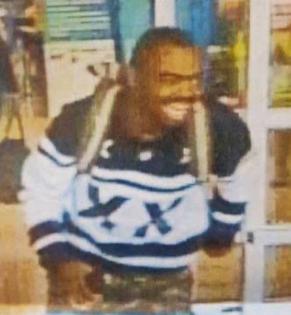 The suspect (pictured) is described as a black male, between 30-40, 6-0, 180 pounds with a medium build, short black hair and a full beard with a mustache.