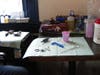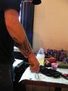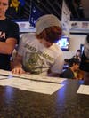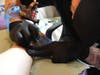 I ended up waiting over four hours before I got my tattoo, down in the main restaurant with the other attendees. I had somewhat expected this might happen so I brought a book with me to read. I never picked it up downstairs though, as too much was going on. The folks from Off Topic Radio Network, an online radio station run out of Manassas, broadcast live from the event to entertain attendees. The hosts ran silly contests to hand out “cut-in-line” passes, including coaxing one attendee into performing the Safety Dance. When they heard I was letting readers on Burke Patch’s Facebook Page vote for which tattoo I was going to get, they brought me up and had me chat with them on the microphone as well. (Nearly everyone voted for a flower design with petals falling off it)