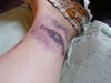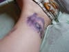 The tattoos were done upstairs in a room filled with artists working away, carefully observing safe protocol. Gloves were constantly changed, needles were carefully thrown away, and biohazard rules were followed. I was lucky enough to get Philip Watkins, a very talented tattoo artist from The Body Gallery in Sterling. I thought we were just going to get little black and white outline tattoos, but every artist was doing full color in your choice- which was totally awesome. I told Phil I wanted the flower to be purple and he determined everything else.