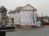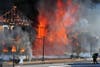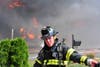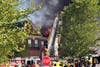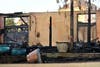A home across the street that had its siding singed from the far-reaching flames still has not seen repairs and large strips of siding now dangle over a sidewalk where her children once rode their bikes.