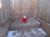 Today, a lone flower pot someone dropped off sits at the entrance to the home.