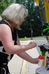 Sticking out of the side of the truck is the flavor station. Jewell hands out snowies to kids and lets them mix the flavors in whichever way they want.