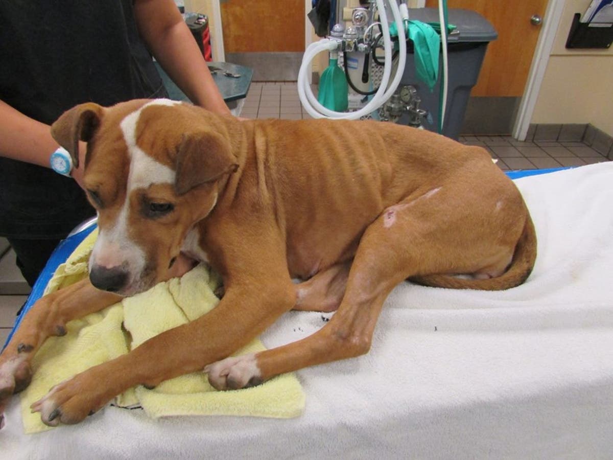 A veterinarian evaluated the dog and found a fractured left front leg, fractured pelvis, and a bad cut on her back left leg.