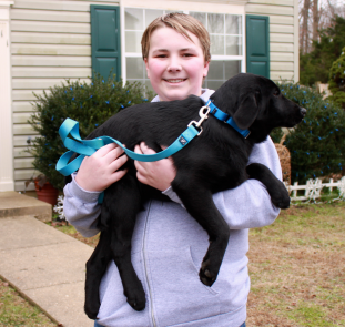 Boy Meets Dog. A.J. Schalk pricks his finger five to 10 times a day. The 13-year-old also wears an insulin pump. A.J. has Type 1 diabetes, and monitoring his sugar level is a life and death responsibility. Now he has a helper. Alpha is a black lab trained to forewarn A.J. when his blood glucose level begins to rise or fall.