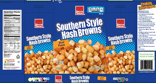 MCLEAN, VA -- A brand of hash browns at Virginia Harris Teeter stores are being recalled due to contamination from golf ball materials.