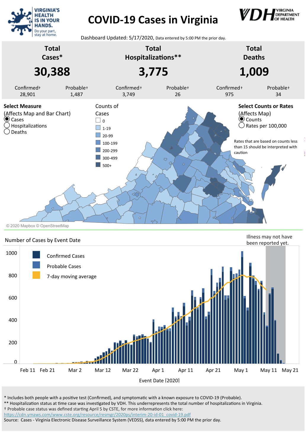 In its tabulations, Virginia lumps confirmed and probable data together.
